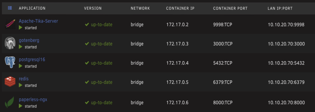 Once all three containers are running, set the Paperless container to auto start as well.