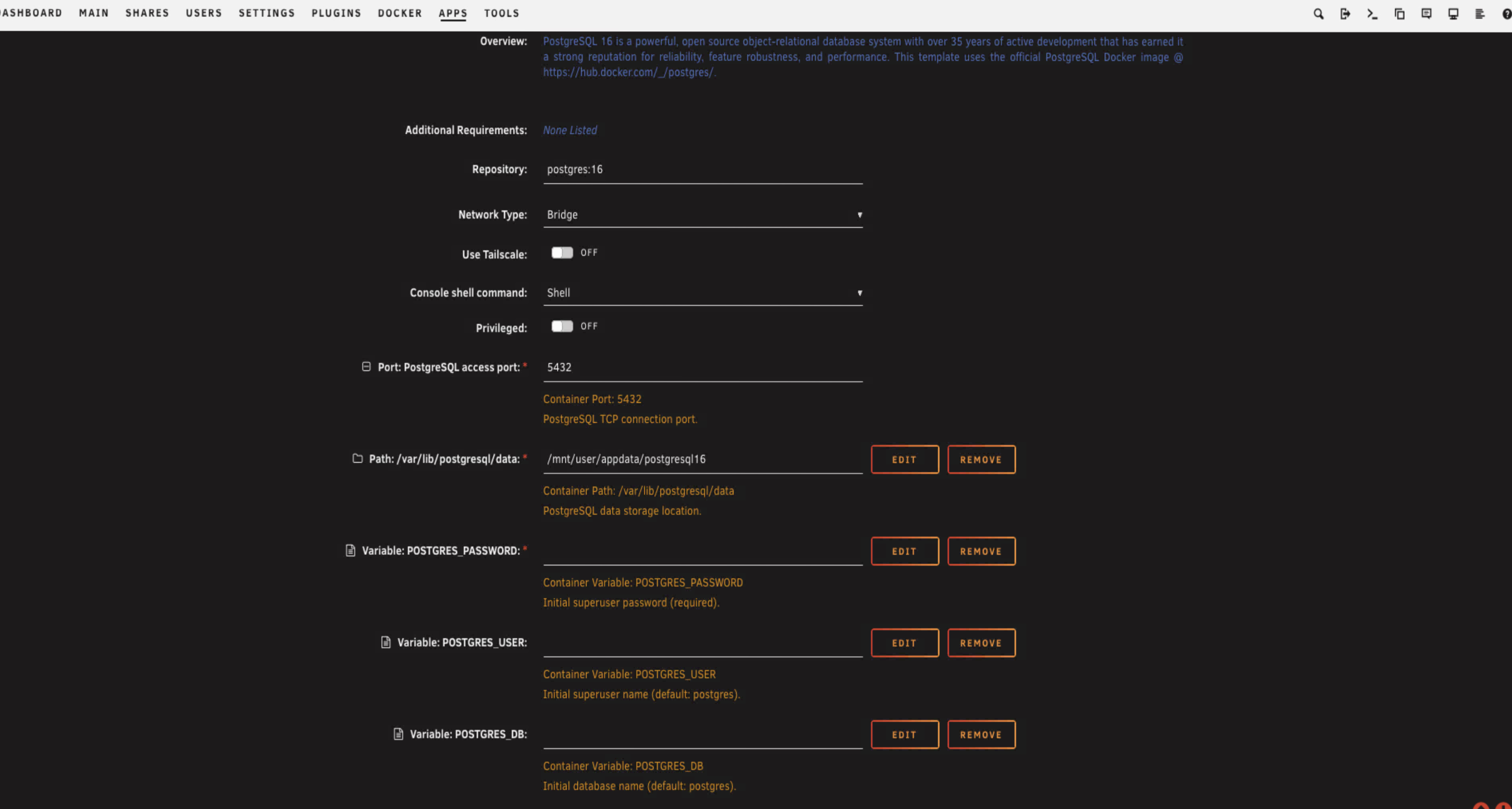 We're going to install Postgres 16. It's the current version available in Community Apps and works well with Paperless.